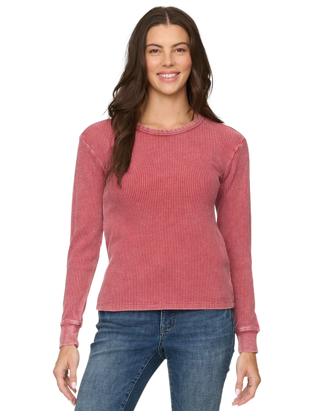 Designed with a super-soft, vintage-washed waffle knit and featuring built-in stretch, this layering piece fits like a favorite every time. This comfy casual top has a classic crew neckline and relaxed body and long sleeves. Great on it’s own or paired with a flannel or jacket you’ll want to wear it over and over again.